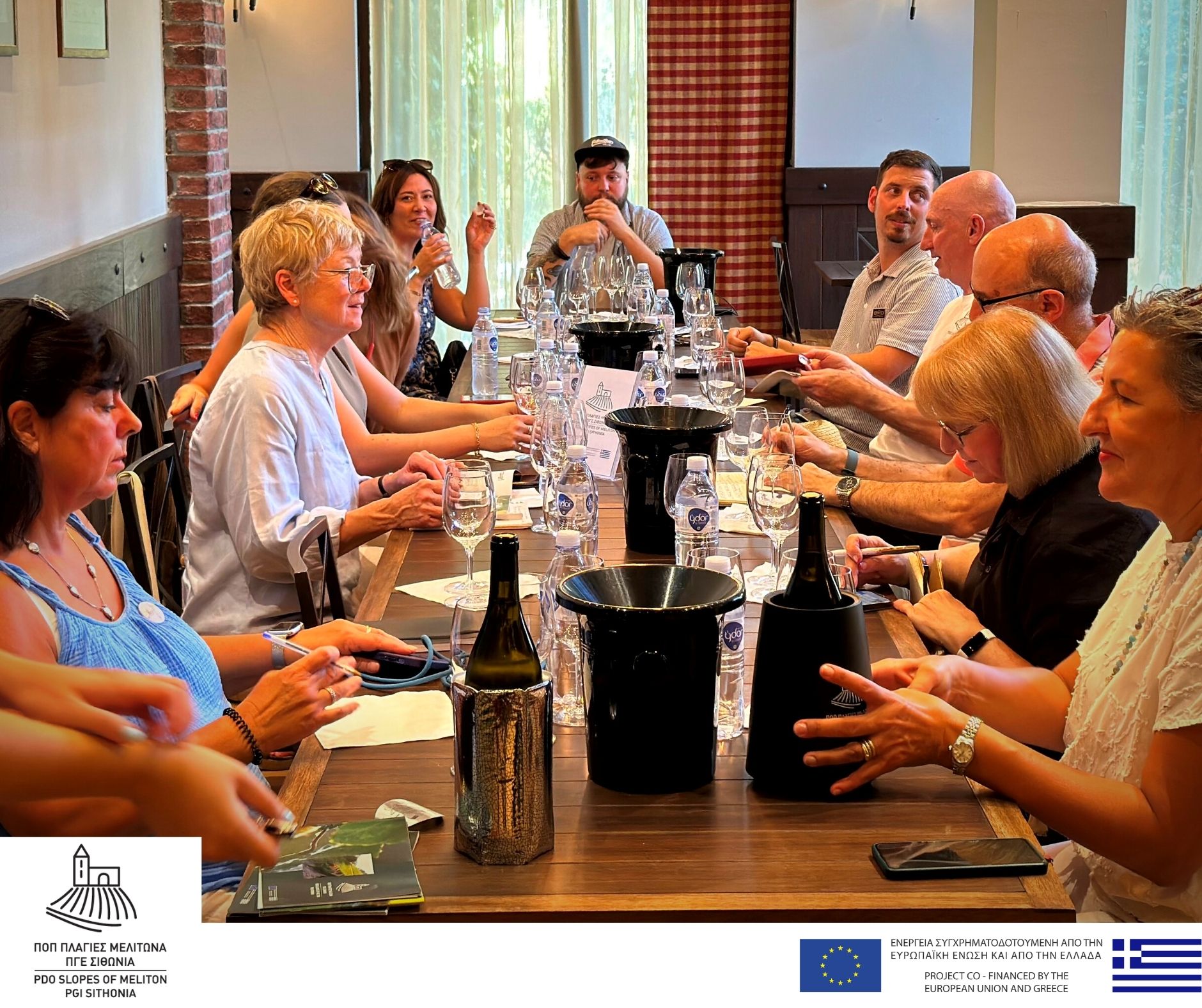 Μεγάλο ενδιαφέρον για τους ελληνικούς οίνους ΠΟΠ Πλαγιές Μελίτωνα – ΠΓΕ Σιθωνία από καλεσμένους από το Ηνωμένο Βασίλειο κατα τη διάρκεια εκπαιδευτικού ταξιδιού.